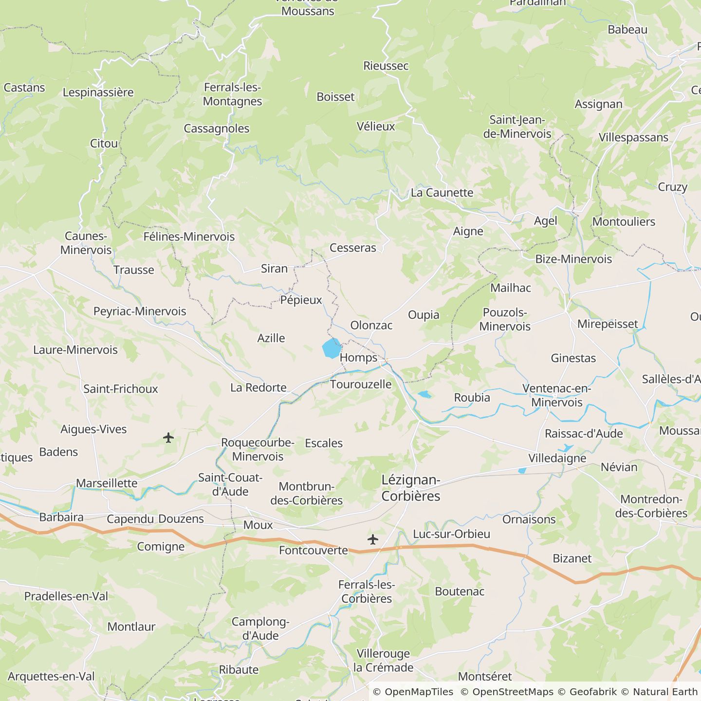 Depuis l'A9, suivre la sortie N°38 Narbonne-Sud puis la N9 Carcassonne/Lezignan-Corbières. Prendre la N113 Carcassone/Lezignan-C jusqu’à Villedaigne. Ensuite, la D11 direction Olonzac puis la D611 direction Homps. Tournez à gauche sur la D610 direction Homps.