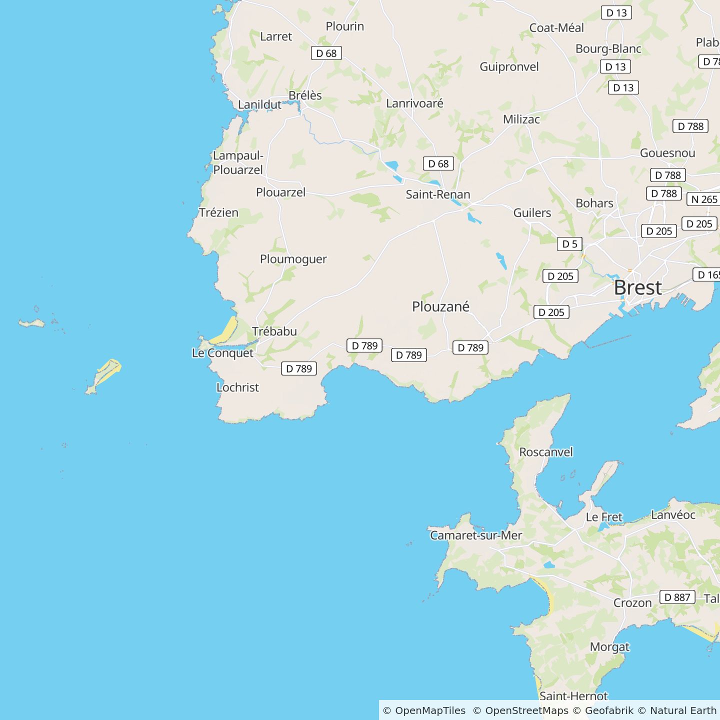 Prendre d'abord l’autoroute jusqu’à Brest. Puis, suivre la D267 via Saint–Renan. Enfin, prendre la D38 direction Locmaria-Plouzané.