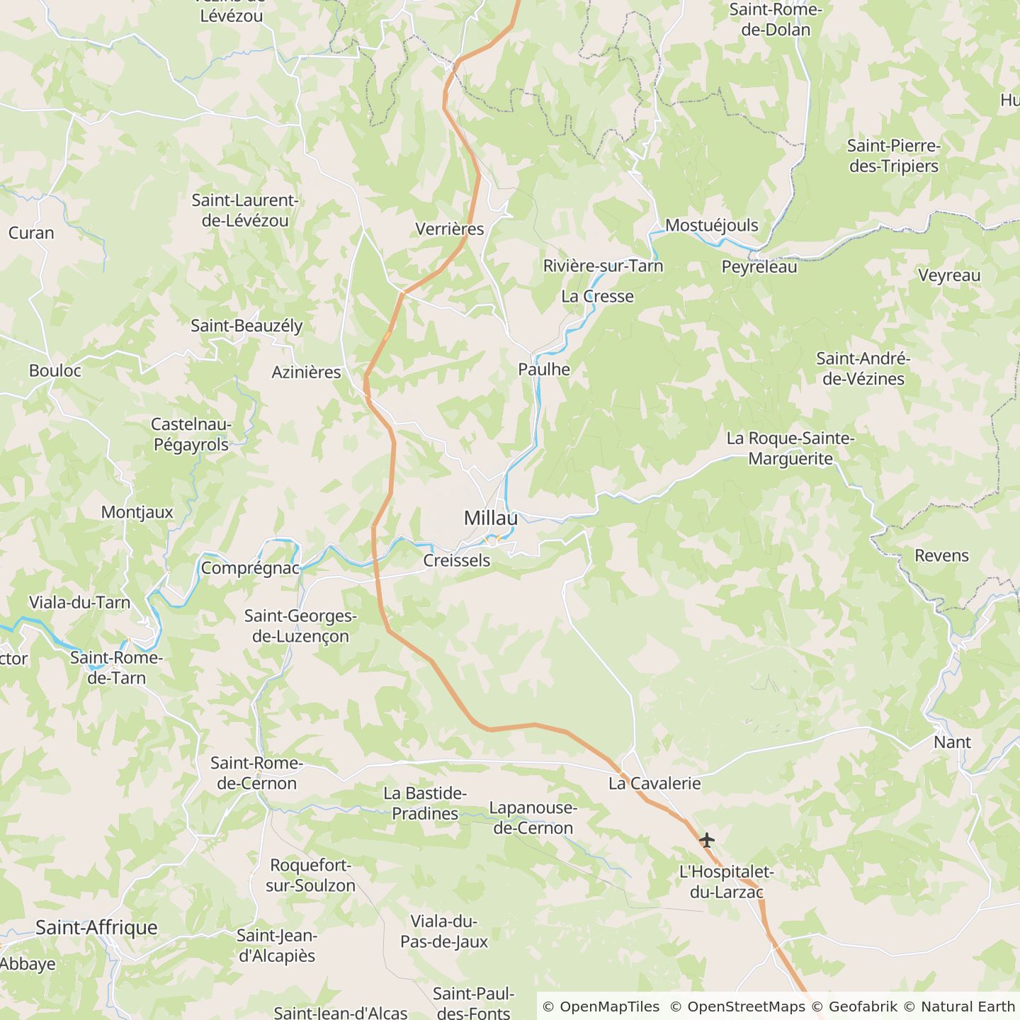En provenance de Montpellier, prenez le A75 Sud/Nord à Béziers. Suivez la sortie 47 Millau-Centre La Cavalerie et dirigez-vous vers le D999. Lorsque vous êtes à Millau, prenez la direction « Campings ».