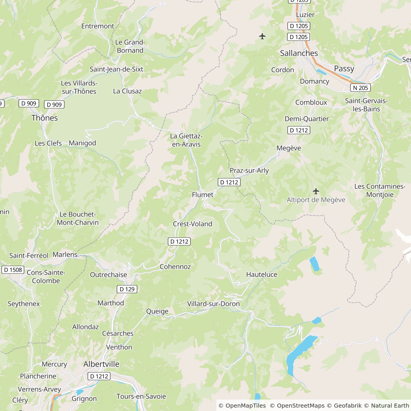 Gares d’Albertville (25 km) ou de Sallanches (25 km).