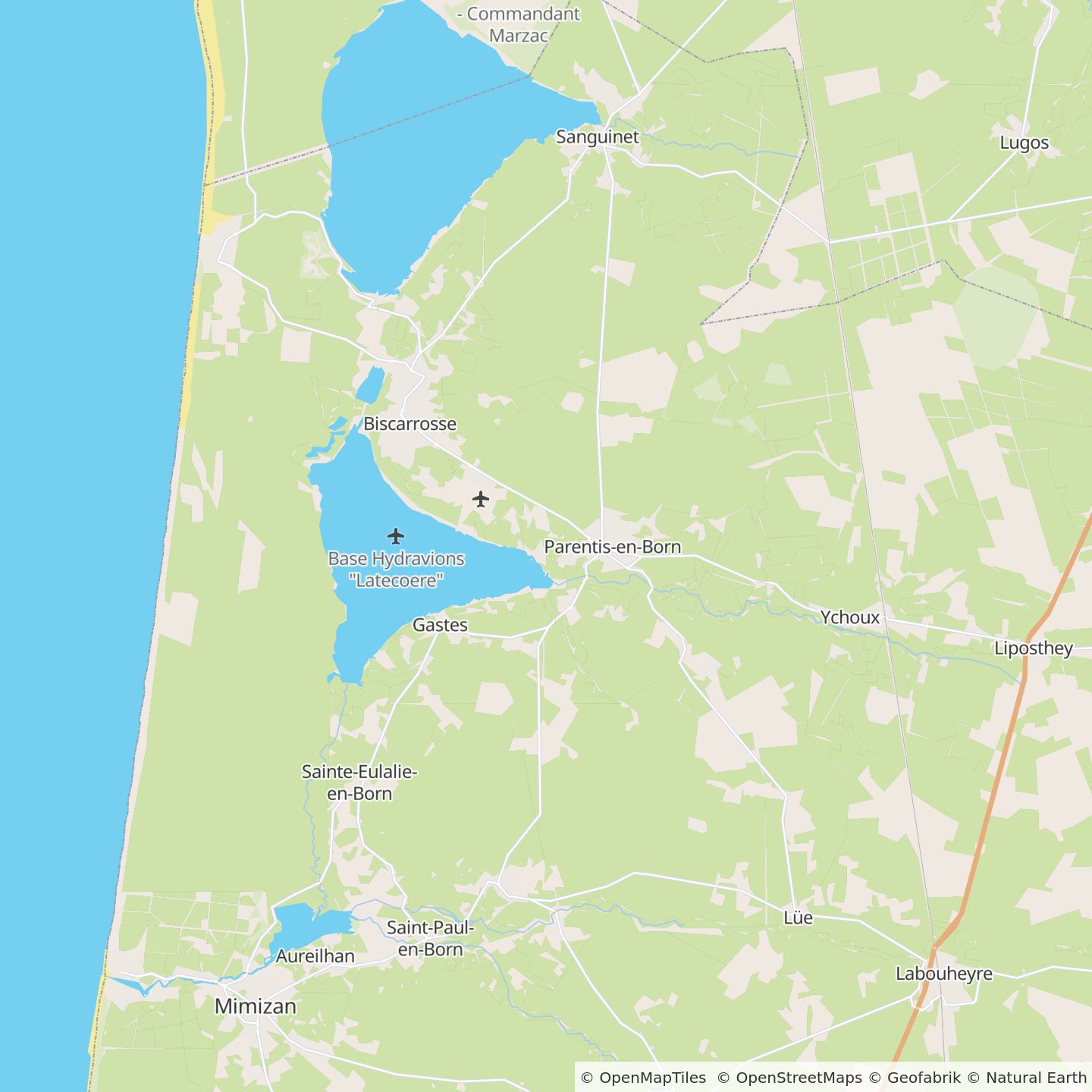 Depuis Bayonne (130 km) : prendre l'autoroute A63 vers Bordeaux et faire la sortie 17 Parentis-Liposthey. Continuer la D43 en direction... de Parentis.