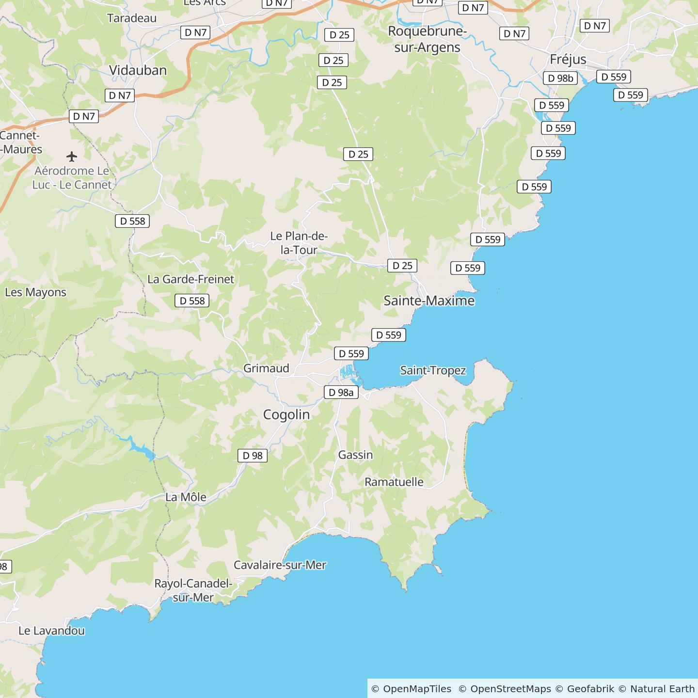 - N98 jusqu'à Saint-Tropez