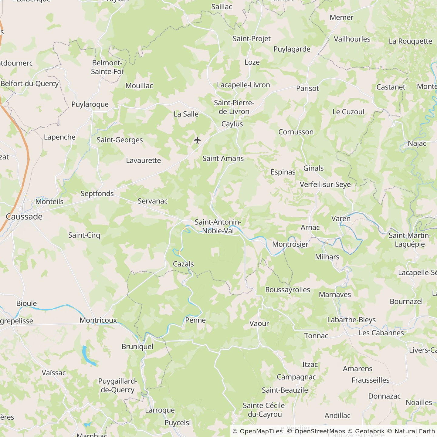 Sur la N20 entre Cahors et Montauban (à partir de Caussade), prendre la D926, en direction vers Villefranche-de-Rouergue, à 7 km environ. Prendre ensuite sur la droite la D5 jusqu'à Saint-Antonin.