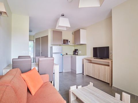 Nos appartements, confortables et fonctionnels, sont parfaits pour se détendre après une journée de découverte. Tous sont équipés d'une kitchenette complète (réfrigérateur-congélateur, plaques vitrocéramiques, micro-ondes/grill), d'une télévision et, pour la plupart, d'une terrasse meublée pour profiter de l'air vivifiant de la région.