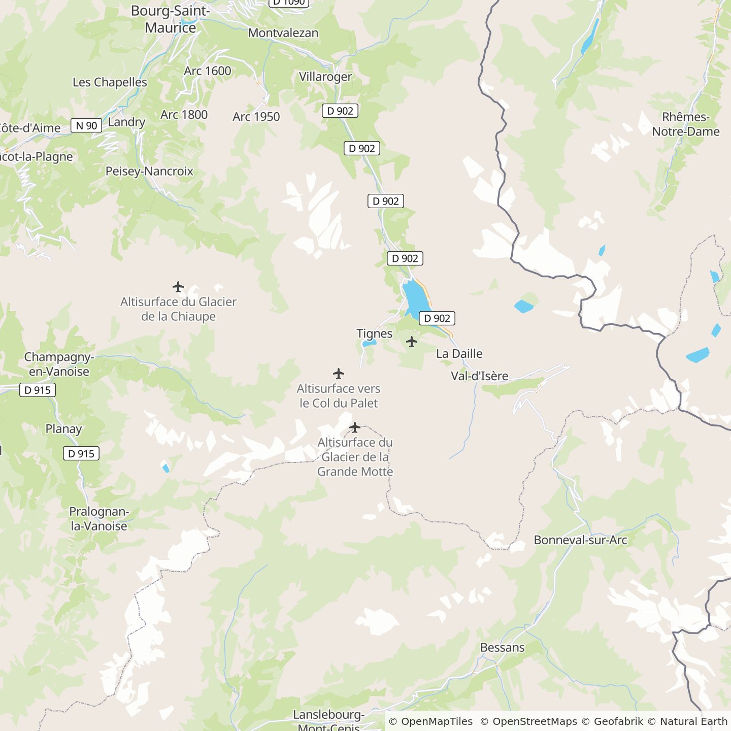 Prendre l'autoroute A43 en direction de Chambéry et Albertville. Suivre ensuite les deux voies d'Albertville à Moûtiers et rejoindre la N90 à Bourg-St-Maurice. Continuer sur la D902 jusqu'à Tignes en suivant les indications «Tignes Val Claret».